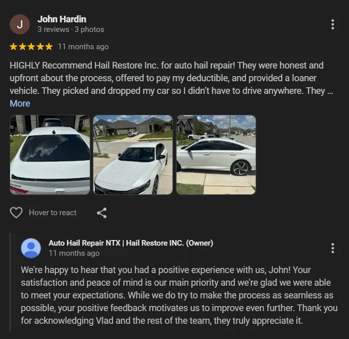Experience Expert Auto Hail Repair with the Top-Rated Team in Texas
